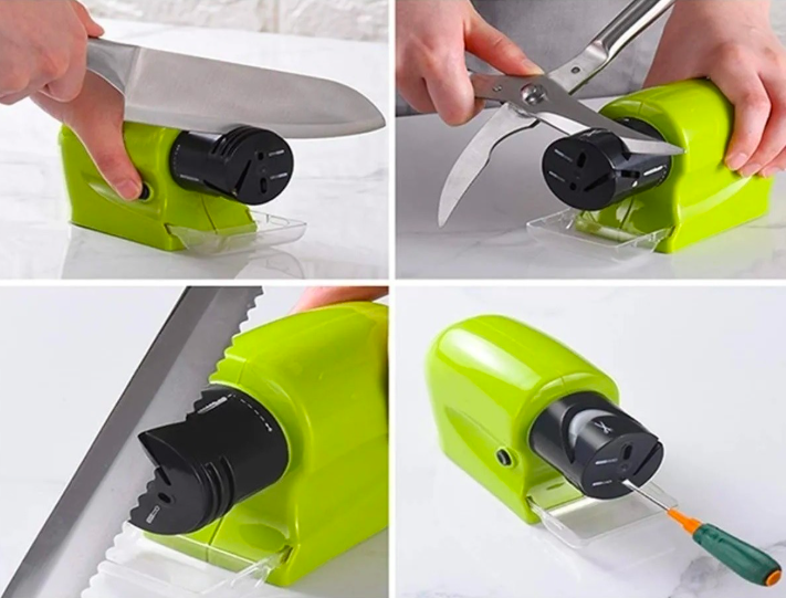 Com esse amolador você consegue amolar facas, tesouras, alicates de unhas e ferramentas em segundos e sem muito esforço porque esse amolador é elétrico.